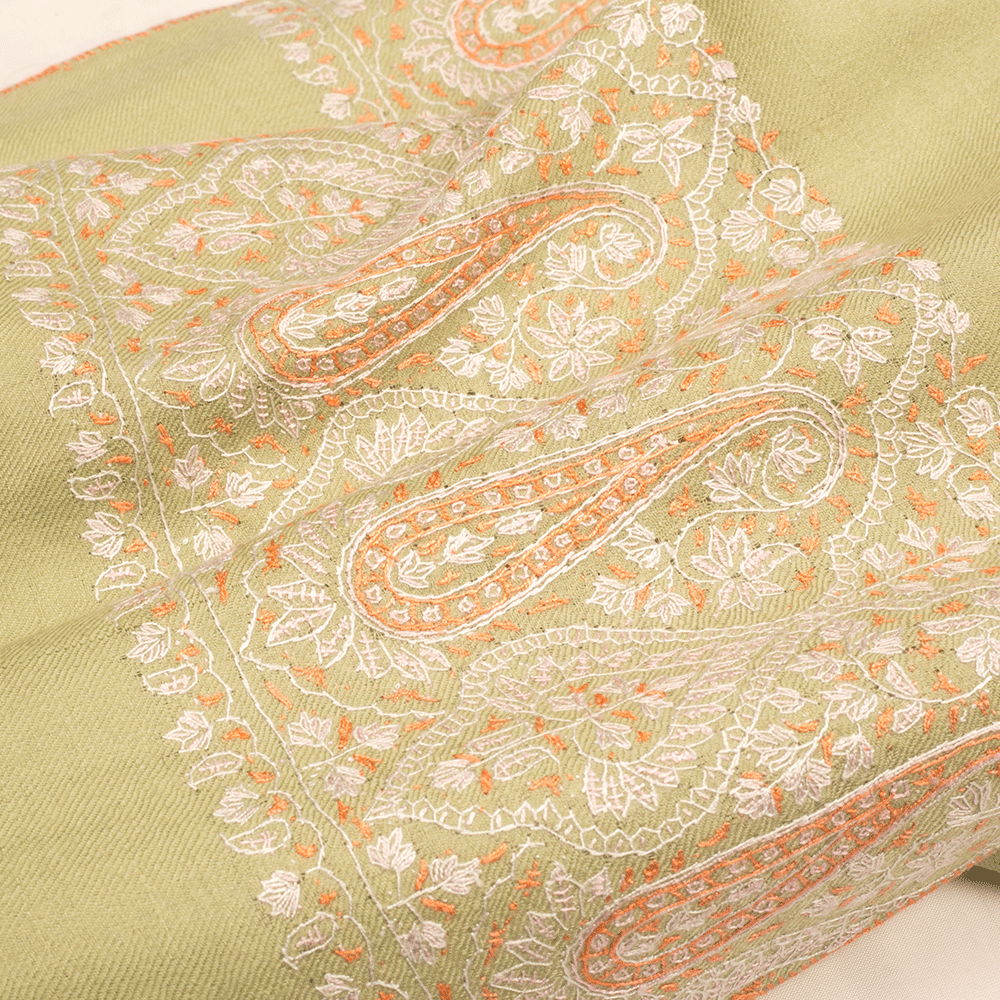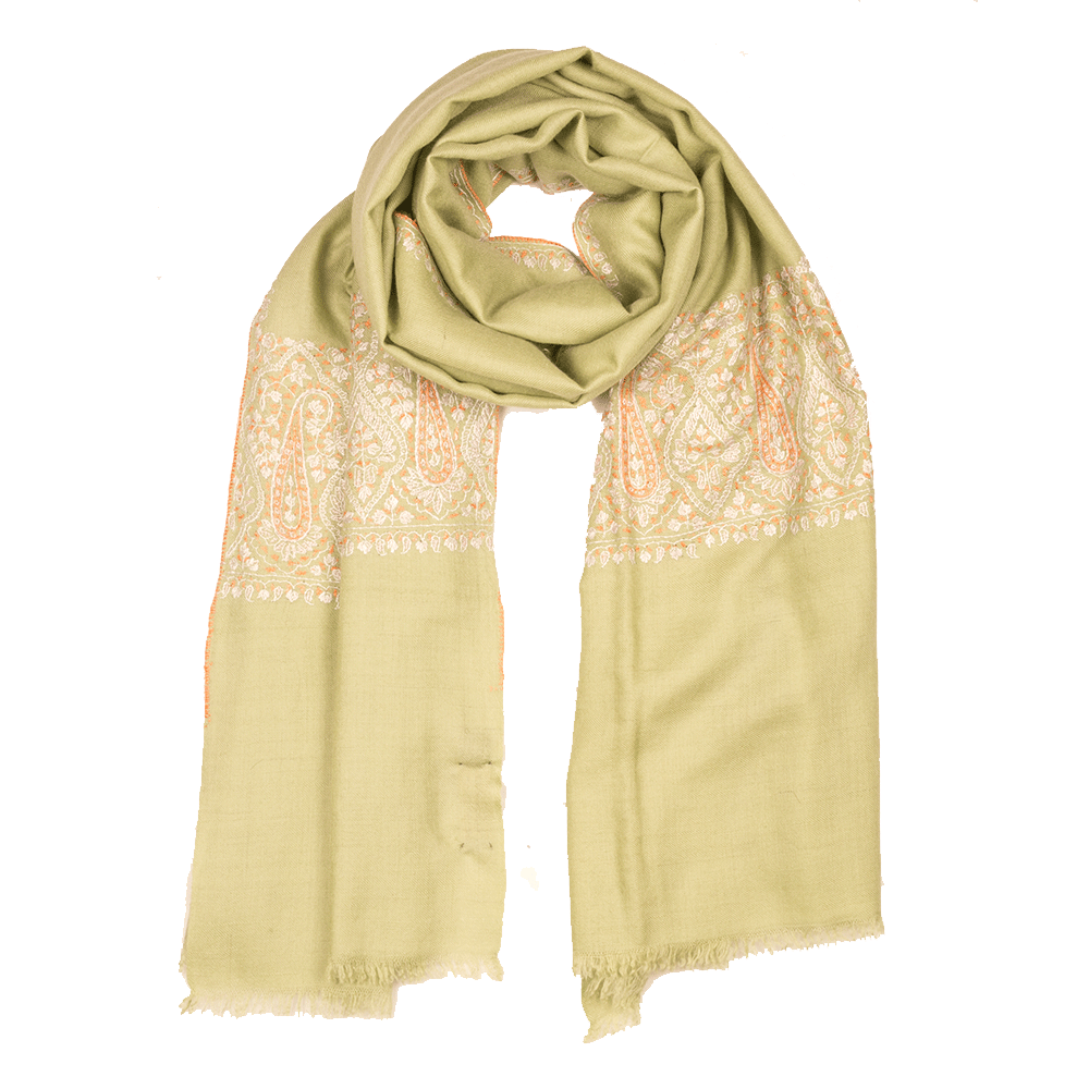 Embroidered Pashmina Stole - Seacrest Green & Orange