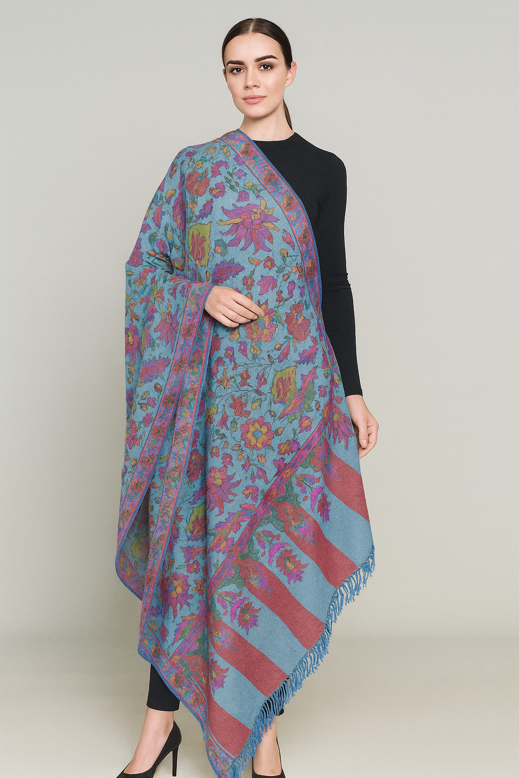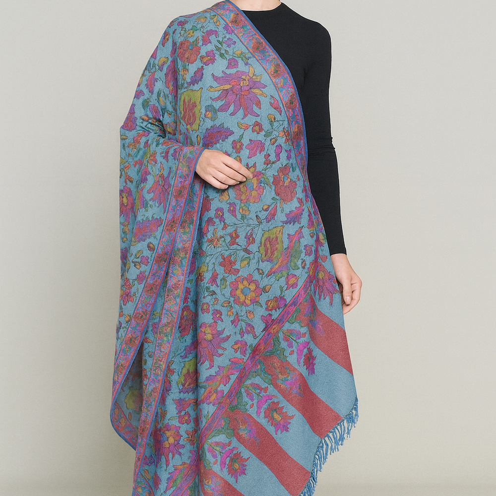 The result is a mesmerizing tapestry of intricate motifs and graceful colors — a celebration of heritage, craftsmanship, and elegance. With its soft texture and generous drape, this shawl offers warmth without weight, making it perfect for both everyday sophistication and special occasions.